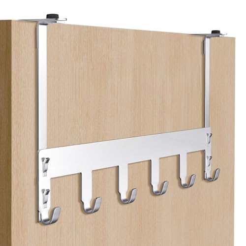 Luxear krok hängare, justerbar kraftig 20 kg över dörren, klädhängare i rostfritt stål förvaring med 6 krokar, ingen borrning för kläder, handduksväska, hatt, badrum, sovrum, kapprum