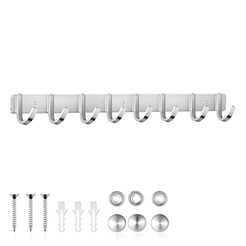 ERWEY Kroklist, kökslist, klädkrok, garderobslist, garderobskrok, väggkrok rostfritt stål för badrum, kök, kläder, handduk (8 krokar, 60 cm)