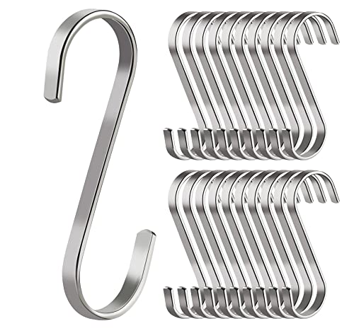 ilauke 20-pack S-krokar platta rostfritt stål S-formade multifunktionskrokar i rostfritt stål för upphängning köksredskap redskap handdukar kläder växter trädgårdsredskap kan belastas upp till 10 kg