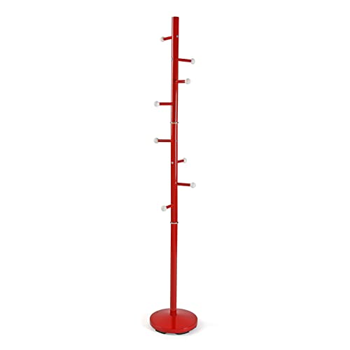 Versa Ruan klädhängare klädhängare minimalistisk stil, med 9 krokar eller hängare för kläder eller hallväskor, mått (H x B x L) 173 x 28 x 28 x 28 cm, metall, färg: Röd