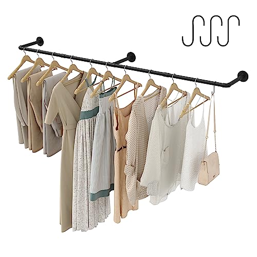 Crehomfy Industriellt rörklädställ med 3 S-formade krokar, 182 cm L väggmonterad klädställ, slitstark järnklädstång, kläder hängande stång för tvättstuga, maxbelastning 60 kg svart (2-pack)