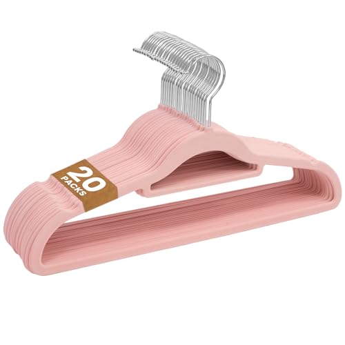 Sasha Morel 20-pack sammetshängare | halkfria sammetshängare för kläder med slipsorganisatörer | platsbesparande hängare och 360° vridbara krokar garderobsförvaring organisatör