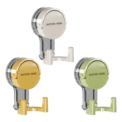 Disnace 3-pack sugkoppskrokar, starka dubbla krokar sugkoppskrokar, vakuum sugpropp badrumskrok, krokar utan borrning för badrum kök fönster dusch, 5 kg lastkapacitet utan borrning, vit grön gul