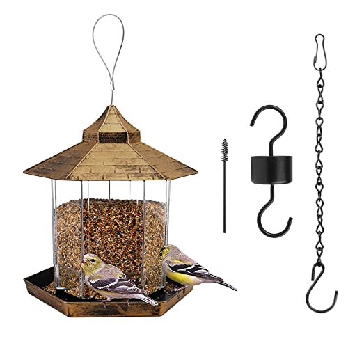 Fågelmatare hängande ekorrsäker trädgård fågelmatare med tak och bricka vattentäta utomhus fågelmatare för små fåglar med metallanti-antiantiantiantiantiantianti-krokar, kedjor, borstar