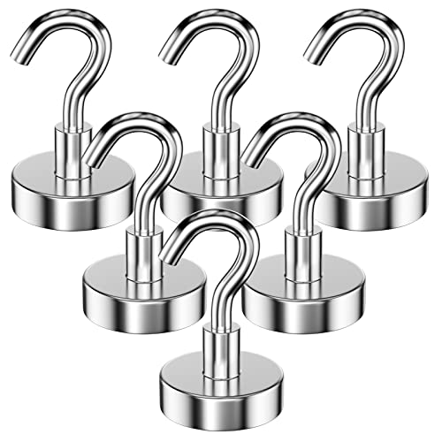 Gvolatee 6 st 25 mm magnetkrok dragningskraft 22 kg, magnetisk magnet avtagbara starka krokar, neodym, runda magnetiska krokar för kök, kylskåp, tak, medium