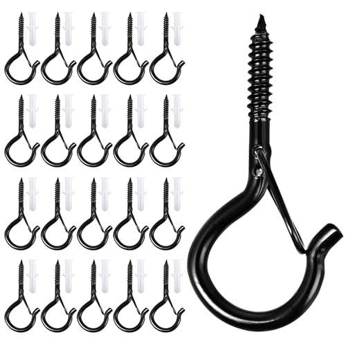 Lrocotanc skruvkrokar set om 20 krokar i rostfritt stål för skruvning med säkring – tak – väggkrok för att hänga krukväxter och dekoration (upp till 10 kg) svart
