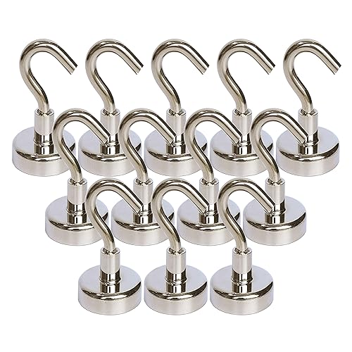 XUIIOSOOKP 10 st. magnetkrokar extra starka, neodymmagnet, starka superstarka magneter med krokar, magnetisk hållare krok för tak, badrum, kök, handduk, garage, kylskåp, silver