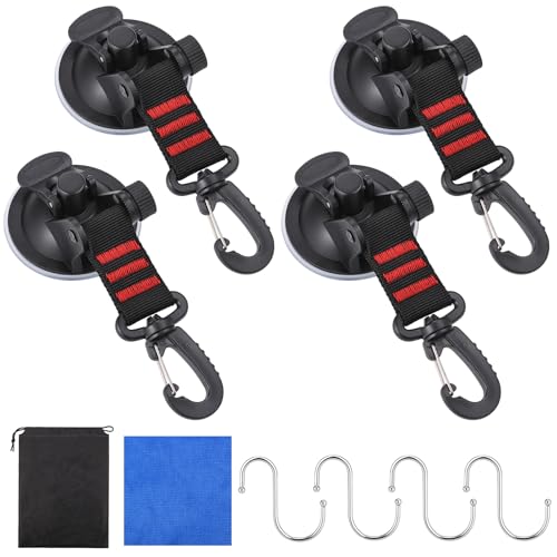 Yimomoyi 4 sugkoppskrokar, kraftiga sugkoppar, sugkopp med 360° roterbar D-ringremkrok, mångsidiga campingsugkoppskrokar med 4 S-krokar, markis sugkoppar för husbil, fönster, baktält, tak