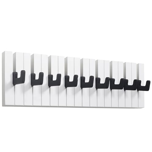 RICOO Garderobskrokar väggkrokar WM1886-L, barngarderob kroklist pianodesign, svart-vit garderob i trä, modern och vikbar, 9 utfällbara krokar för barnrum och hall – 49 x 15 x 2 cm