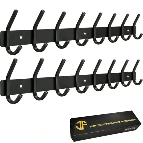 JOLY FANG Kroklist, klädkrokar, garderobskrokar i rostfritt stål med 8 krokar, mångsidiga handdukskrokar garderobslist för garderob badrum kök (svart, 8 krokar – 2 stycken)