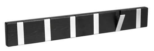RICOO Garderobskrokar väggkrokar WM1886-S, barngarderob kroklist pianodesign, svart-vit garderob i trä, modern och vikbar, 5 utfällbara krokar för barnrum och hall – 29 x 15 x 2 cm