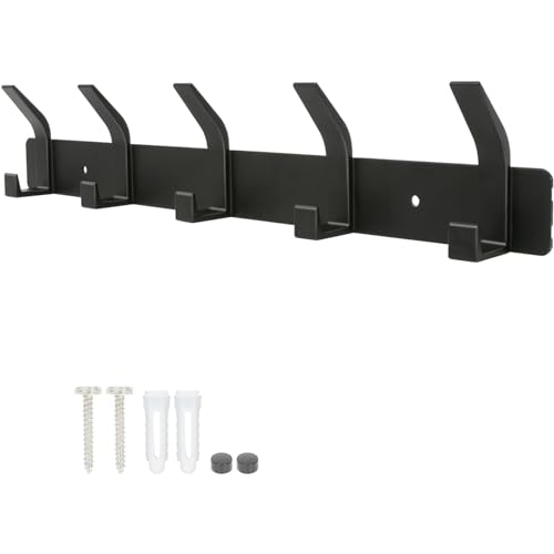 YUNISS Garderobskrok klädkrokar vägg, garderobslist, kroklist, aluminium med 5 krokar, väggkrokar utan borrning, korridor, sovrum, badrum (svart)
