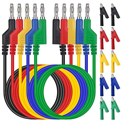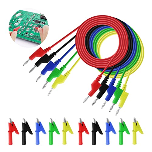 Hejo 5 st testledningar för multimeter, 4 mm dubbla ändar, bananplugg, testledningar med 10 st krokodilklämmor, pluggbara mjuka testhylsor, längd på 1 m för multimeter