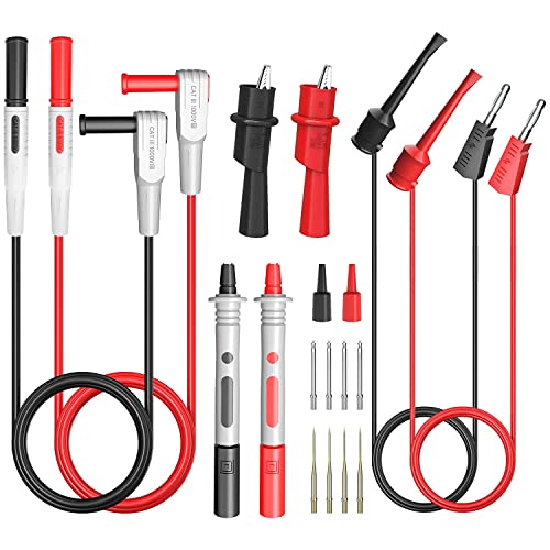 Cleqee 25 stycken multimeter testkablar av silikon med utbytbara testspetsar, krokodilklämmor, testkrok, testpincett för testning av digitala elektriska multimeter