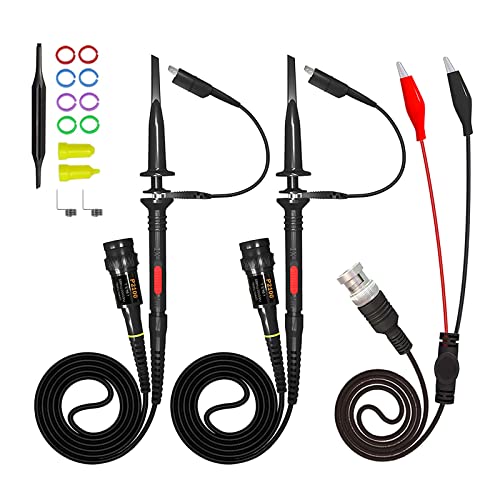 AUTOUTLET 100 MHz P2100 X1 X10 oscilloskopsonder med BNC-kontakt till krokodilklämmor, testkrokklämmor och BNC helt säkerhetsisolerad slutsond