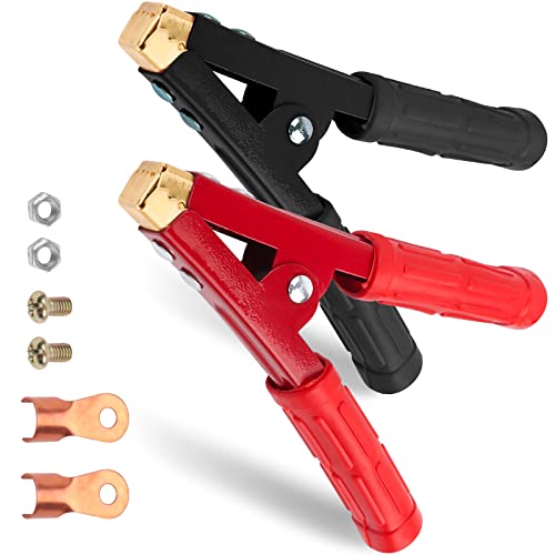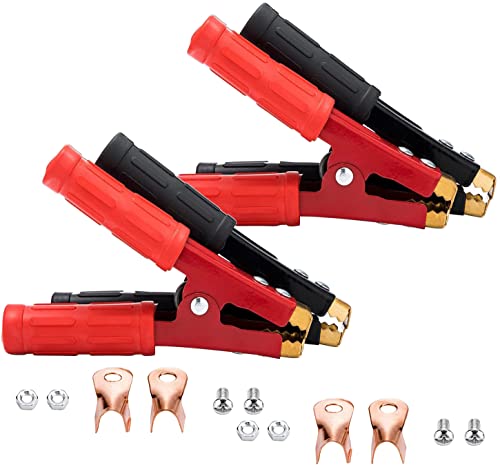 JatilEr 2 x krokodilklämmor, stora krokodilklämmor, 1 000 A, av ren koppar, med isolerande mantel, för 16–35 mm² batterikabel