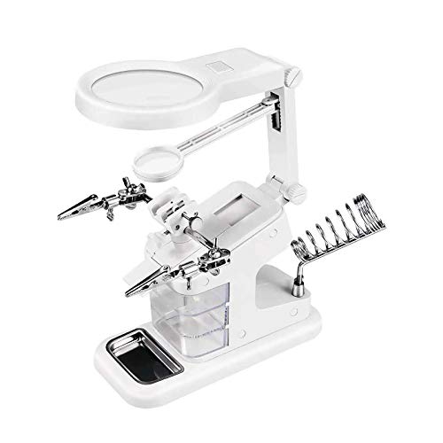 EUROXANTY - 5 LED svetsförstoringsglas 3 linser 2,5 mm 7,5 mm 10 mm krokodilklämmor lödkolvshållare
