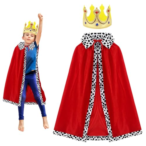 AHEJIOO Prinskappa barn, cape kung med krona kung, kostym barn pojkar, kung kostym barn för prinsfest, karneval, cosplay, halloween, barndag, 90 cm för barn från 90–135 cm
