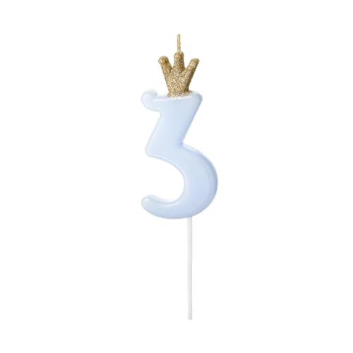 Ljus i form av nummer 3 för födelsedagstårta, guldglitter krona himmelsljus för barn, babyfest, jubileumsfest