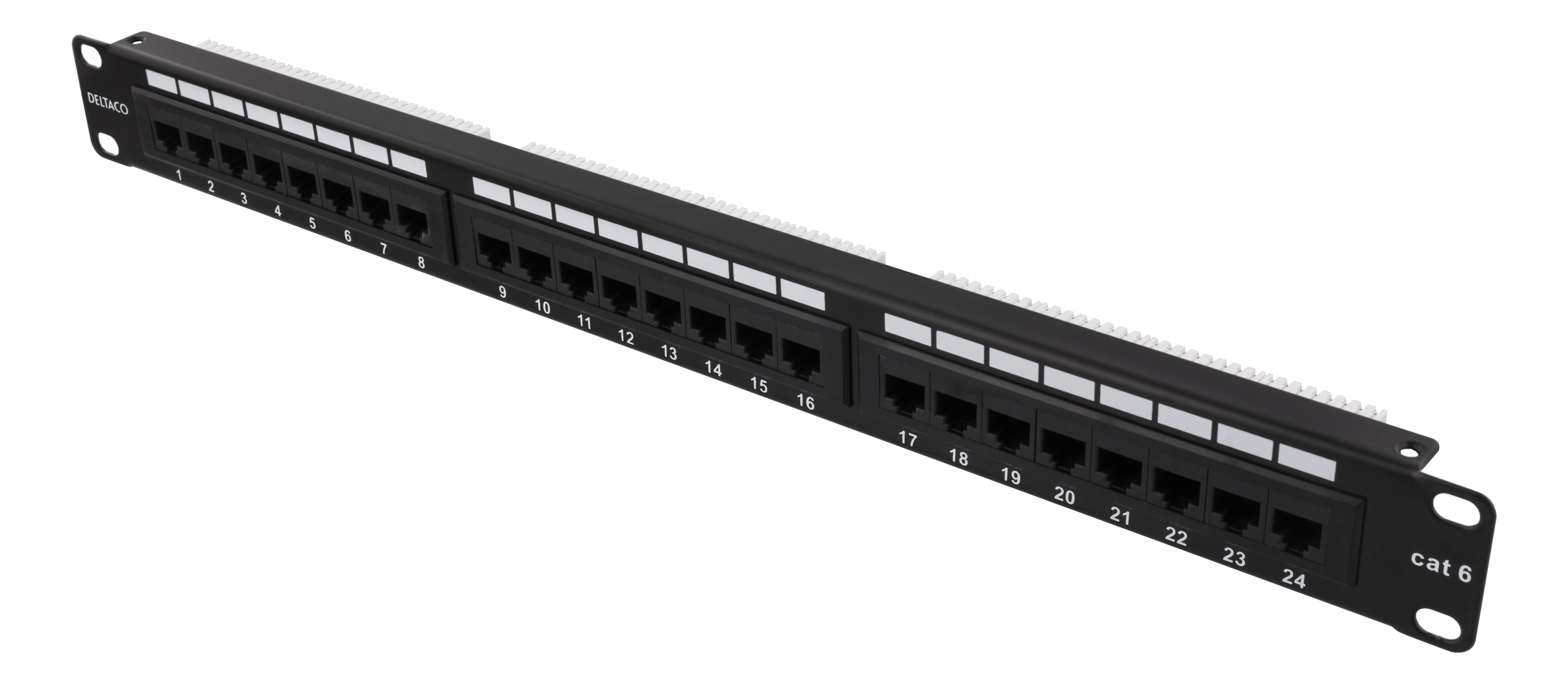 Deltaco DELTACO 19" patchpanel, 24xRJ45, Cat6, UTP, krone-plintar, 1U, svart