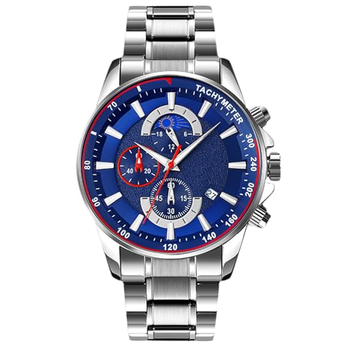 RORIOS Herrklocka vattentät analog kvarts klockor med rostfritt stål mode kronograf multifunktionell klocka herr klockor, Silverblå, armband