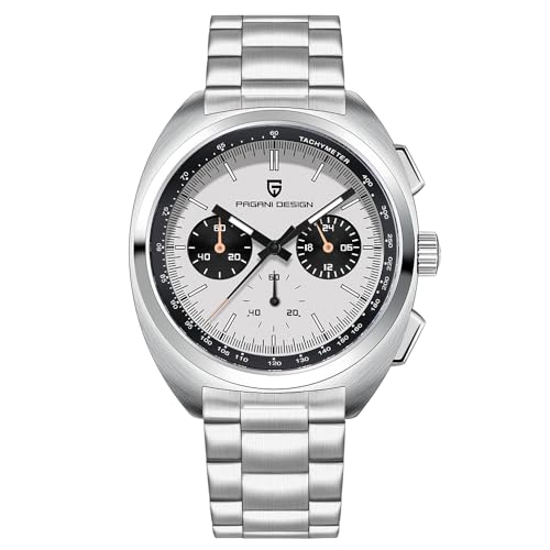 RollsTimi Pagani Design Safir Kvarts Kronograf Vintage Urtavla Klocka Läder Herrklockor Ny Sköldpadda Tillbaka Kronograf 1782 Herr Kvartsur VK63 Rörelse.., Vit Q-1782