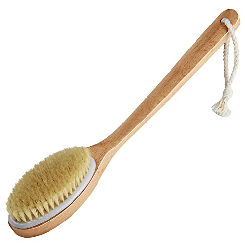 HONZUEN Ryggborste med Långt Skaft – Kroppsborste i Trä med Naturliga Borst, Duschborste för Rygg och Kropp, Torrborste för Exfoliering och Massage