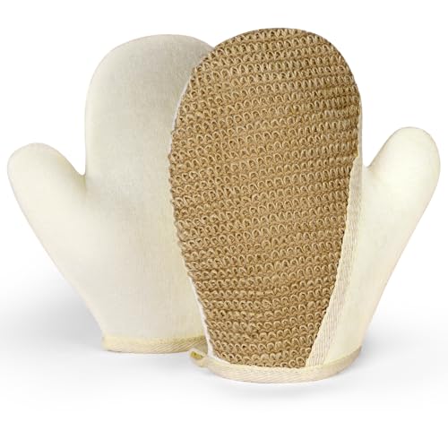 RoserRose 2 stycken exfolierande handskar kropp – peeling handske för kropp – massage handske av bambufiber – för hamam bastu kroppsskrubb
