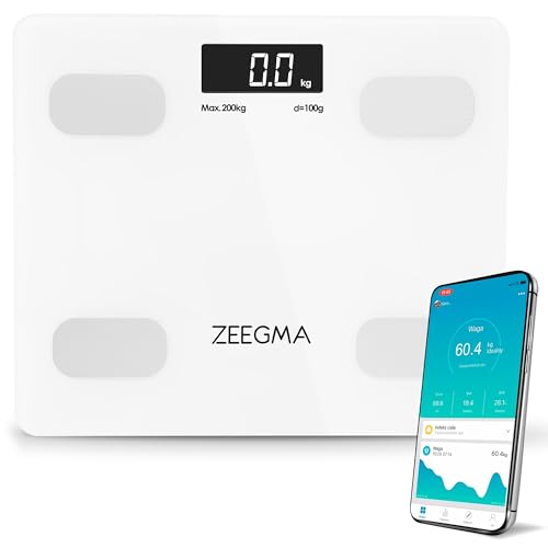 ZEEGMA Gewit Personvåg Med Kroppsfett, Personvåg, Digital Analys Av Upp Till 17 Kroppsparametrar, Exakt Mätning, Lcd, Viktmätningsområde Upp Till 200 Kg