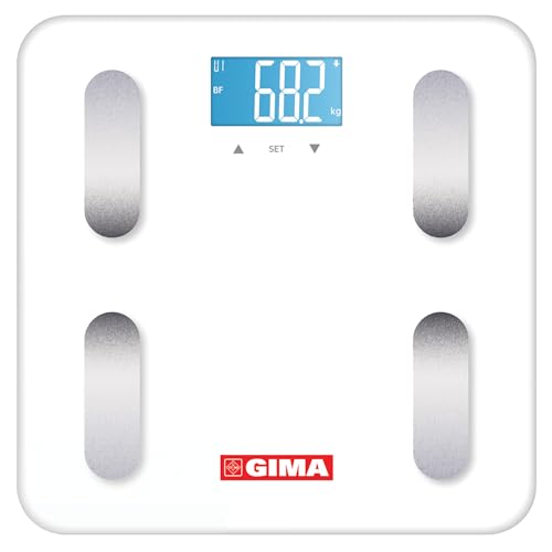 Gima Body Fat Balance Smart Multifunktion Digital våg för mätning av kroppsfett procent vatten i kroppen muskelmassa och benmassa med Bluetooth och LCD-display - mod. 27269