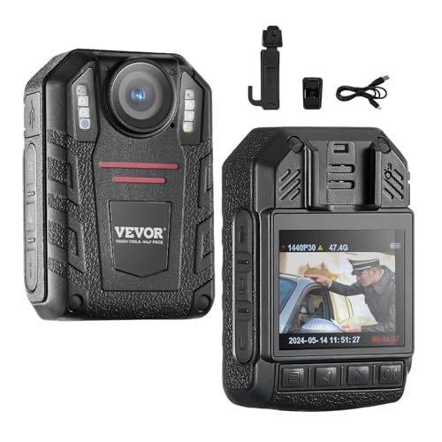 VEVOR 1440P polis kroppskamera, vattentät 64 GB kroppskamera med ljud- och videoinspelning inbyggt batteri 2 850 mAh, högupplöst LCD, infraröd mörkerseende