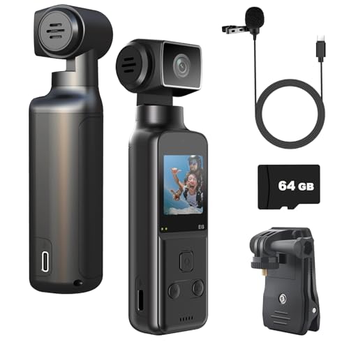 ydi 4K kroppskamera med extern mikrofon, minivideo och ljudfickkamera 270° rotationskamera för utomhussport, cykel, resor, polisrättsväsende, personliga civila, 64 GB ingår