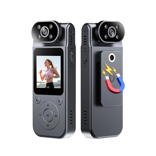 Camnoon 1080P kroppskamera med ljud- och videoinspelning Mini bärbar kamera med kamera, 180° vridbart objektiv, mörkerseende med magnetisk bakre klämma