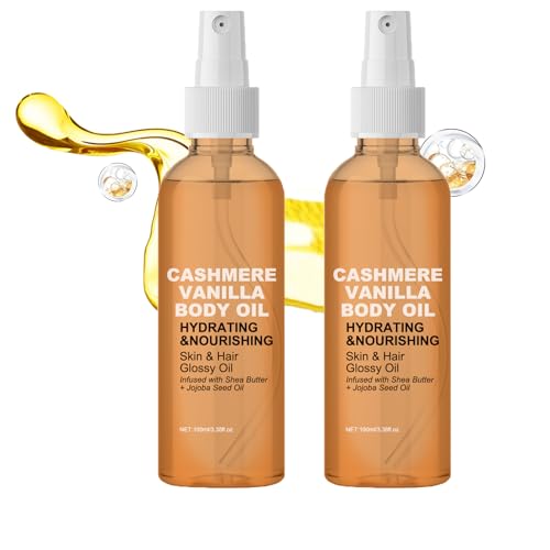 2 st. vanilj kashmir kroppsolja, näringsämnen torr hud och hår med sheasmör jojoba radiance formel, fuktgivande massageolja spray för huden