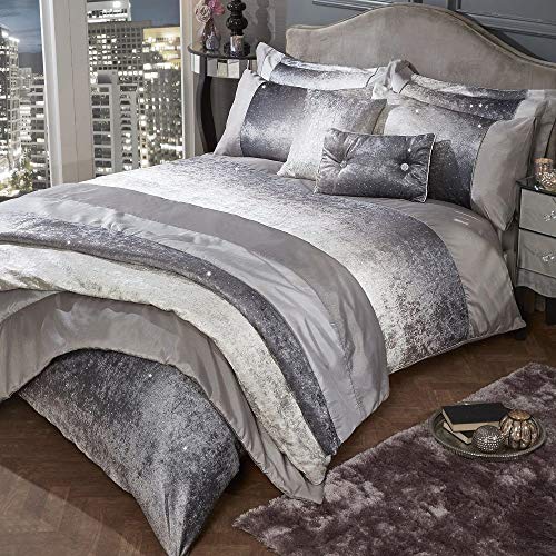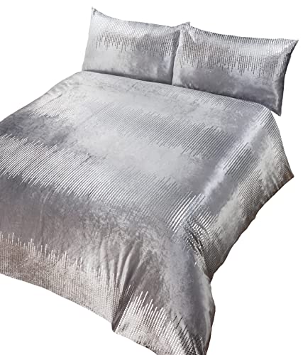 Rapport krossad sammet paljetttäcke sänguppsättning, polycotton silver Modern Super King SILVER