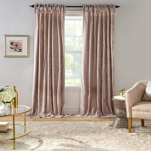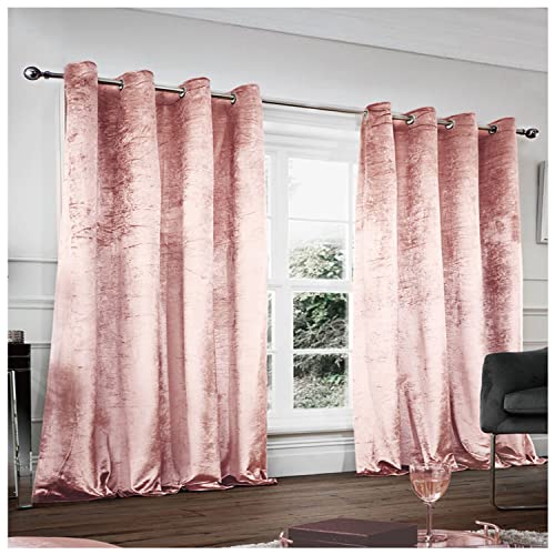 Krossad sammet öljett gardiner ring topp draperi knytband, enkel skötsel glamorösa paneler, rougerosa, 168 x 230 cm