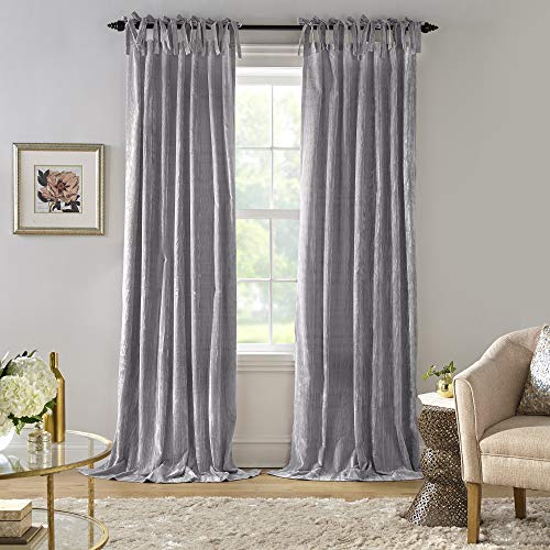 Elrene knyt-topp krossad sammet fönstergardin panel 52" x 95" (1 Panel) Grå