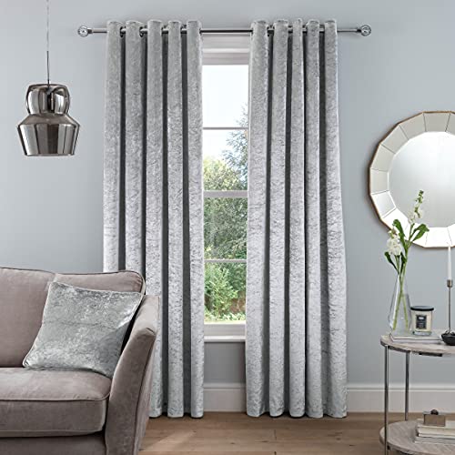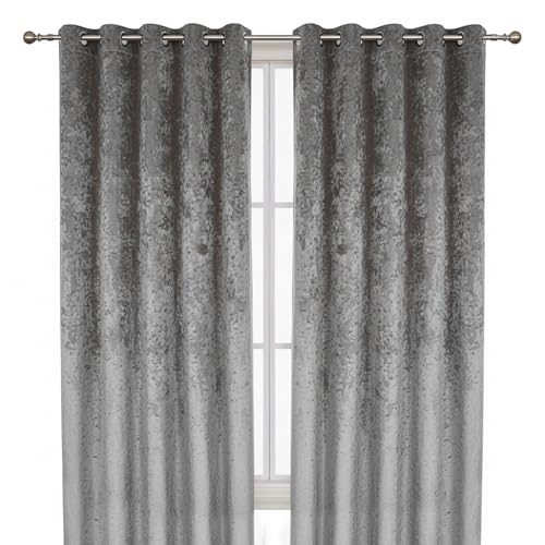 Sienna CCVCUFSI04 Ett par Bandgardiner av Krossad Sammet Helfodrad, Öljettring, Silver, Grå, 168 x 137 cm, Paket med 2