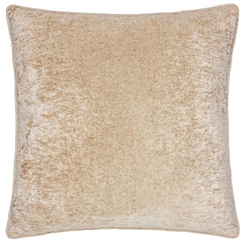 Paoletti Lustre Sammet Polyesterfylld kudde – krossad sammet lyxig texturerad sprydd kant dekorativ kudde (champagne – 50 x 50 cm)