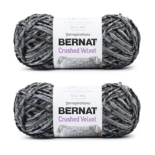 Bernat mörkgrått garn i krossad sammet – 2-pack med 300 g/10,5 oz – polyester – 5 skrymmande – 315 meter – stickning/virkning