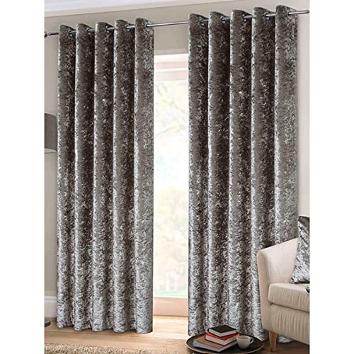 Catherine Lansfield DS/46254/W/E9090/SI Gardin i Krossad Sammet med Öljetter, Brun Silver 229 x 229 cm