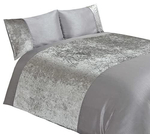 Rapport Home Lyxig krossad sammetspanel dubbelt påslakanset i krossad sammet, silver