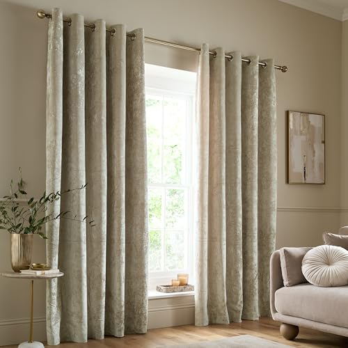 Catherine Lansfield krossad sammet 228 x 230 cm fodrade öljettgardiner två paneler naturliga