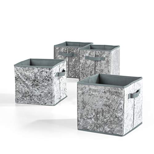 Urban Lifestyle förvaringskuber i krossad sammet, set med 4, grå