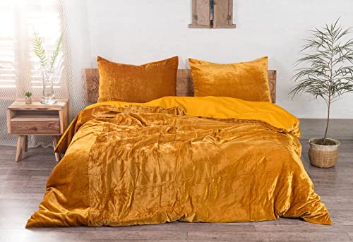 Vinsan Ultra-Luxe Påslakan i krossad sammet, boho sängkläder, UO täcke, sängkläder, Donna, 3 st set, guld senap påslakanset, sammet bäddset (queen 228 x 228 cm, gul)