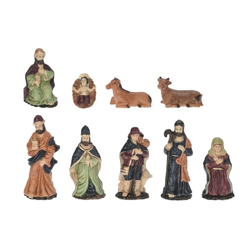 Well Home Set med 9 figurer för krubba med realistiska detaljer och olika storlekar