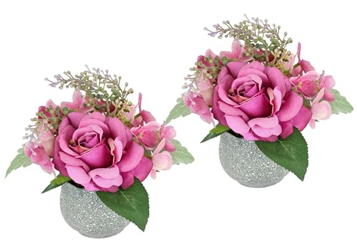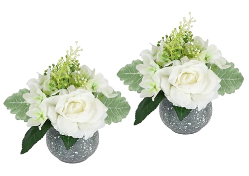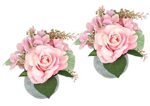 Konstgjorda blommor i kruka av rosor hortensia set om 2 stycken 19 cm bröllop blomsterarrangemang bordsblomma som äkta dekorativ blomma dekoration bröllopsdekoration blomsmycken konstgjord växt