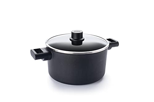 Woll Diamond Logic XR-kruka med glaslock i låda – induktiv – Ø 24 cm, 14 cm hög, 4,5 liter, med 2 sidohandtag – lämplig för alla typer av spisar, aluminium, ugnssäker, svart