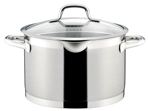 RESTO rostfritt stål 18/10 kastrull soppgryta Ø 24 x 14,0 cm- Stekgryta med vikbara handtag – induktion – kruka med värmebeständigt glaslock och mätskala i presentförpackning, 5,8 l
