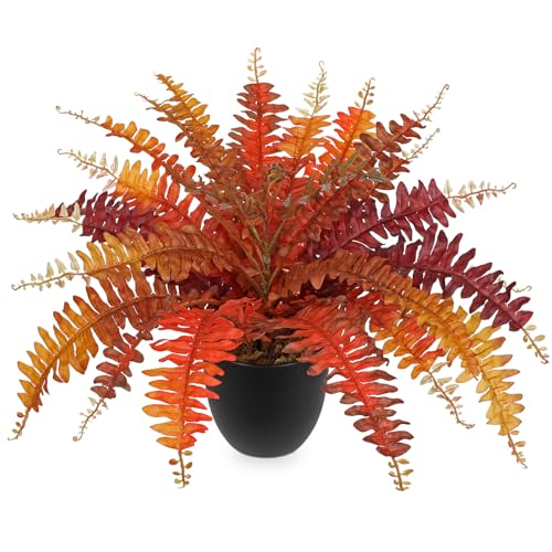 Hollyone 40 cm orange konstgjord Boston ormbunke, falsk krukväxt höstdekorationer för heminredning, falska ormbunksbuskar i kruka för bord, hylla, vardagsrum, Thanksgiving, skörda, höstdekorationer
